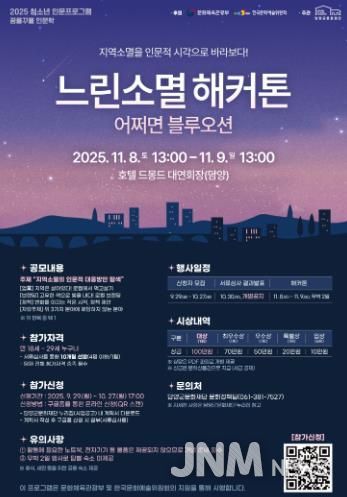 제이앤엠뉴스 | 담양군문화재단은 오는 11월 8일부터 9일까지 지역소멸 대응 인문사회적 문제해결방안을 탐색하는 「느린소멸 해커톤」을 개최한다고 밝혔다.