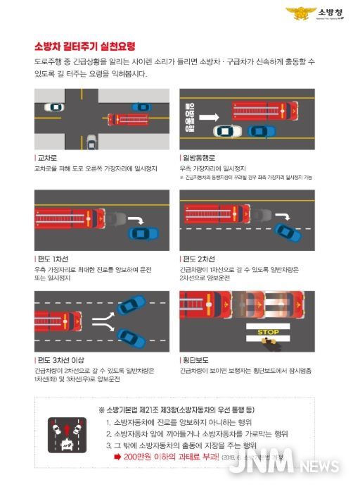 제이앤엠뉴스 | 앞으로 소방차, 구급차 등이 적시에 현장에 도착할 수 있도록 긴급자동차의 원활한 도로 통행을 위한 제도적 기반이 마련될 것으로 기대된다.