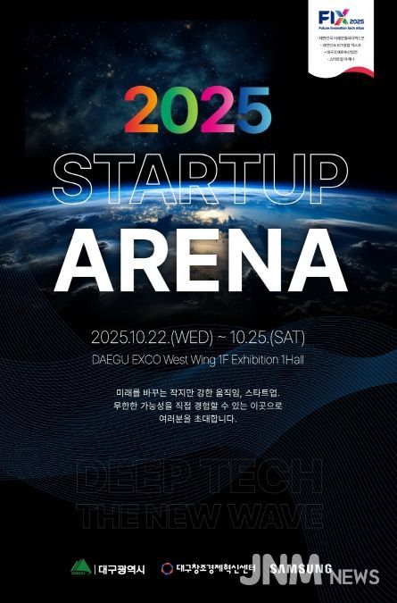 제이앤엠뉴스 | 국내 기술혁신 스타트업과 관련 전문기관이 한자리에 모이는 ‘2025 스타트업아레나’가 10월 22일부터 25일까지 나흘간 대구 엑스코에서 열린다.