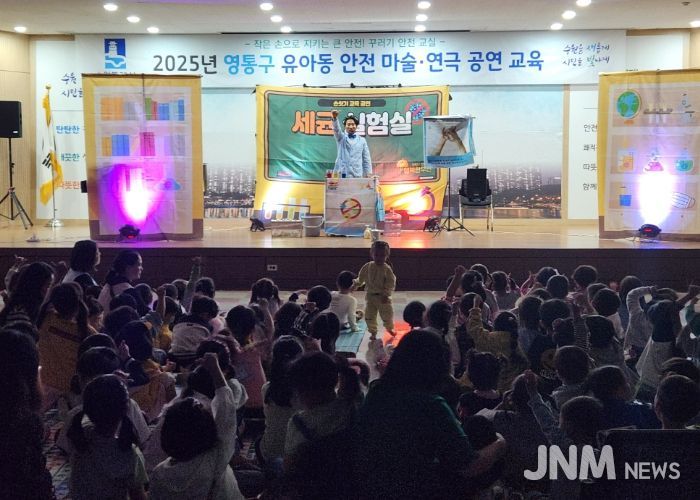 제이앤엠뉴스 | 수원시 영통구는 2025. 10. 13. 영통구청 대회의실에서 관내 유아를 대상으로 안전한 위생 습관을 형성하기 위한 ‘찰리박사의 세균실험실’ 체험형 안전마술·연극 공연 교육을 실시했다.