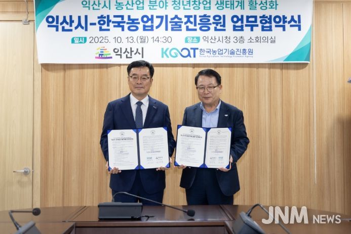 익산시는 13일 한국농업기술진흥원과 익산시청에서 '익산시 농산업 분야 청년창업 생태계 활성화'를 위한 업무협약을 체결했다.