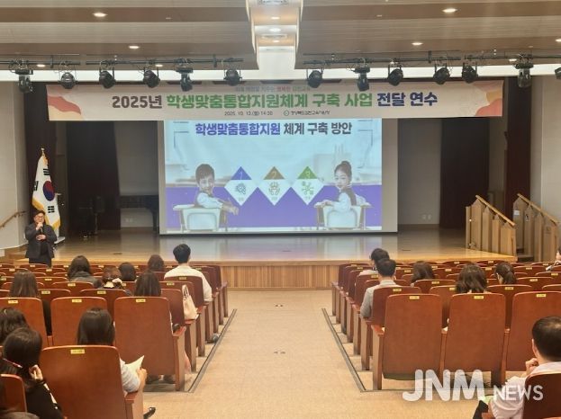 제이앤엠뉴스 | 경상북도 김천교육지원청은 10월 13일 월요일, 김천학생문화예술센터 드림마루에서 관내 52개 초‧중‧고등학교 행정실장 및 업무담당자를 대상으로 2025년 학생맞춤통합지원체계 구축을 위한 전달 연수를 개최했다.