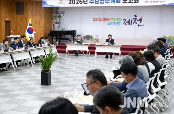 제이앤엠뉴스 | 제천시는 지난 13일 시청 청풍호실에서 김창규 시장 주재로 국장 및 직속기관장, 부서장이 참석한 가운데 2026년 주요업무계획 보고회를 개최했다.