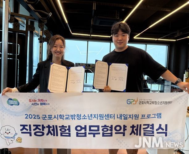제이앤엠뉴스 | 군포시청소년재단(대표이사 김덕희), 군포시학교밖청소년지원센터(센터장 강연미)는 조직 운영 및 마케팅에 관심 있는 학교 밖 청소년의 진로 탐색과 현장 경험 확대를 위해 내셔널국가대표PT센터(대표 김택용)와 직장체험 업무협약을 체결했다고 밝혔다.