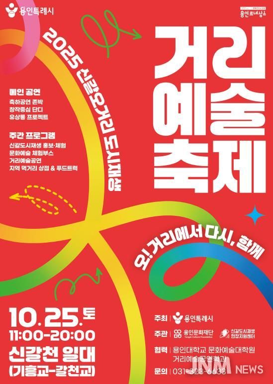 제이앤엠뉴스 | 용인특례시는 25일 신갈오거리에 있는 신갈천 일대에서 ‘2025 신갈오거리 도시재생 거리예술축제’를 개최한다고 14일 밝혔다.