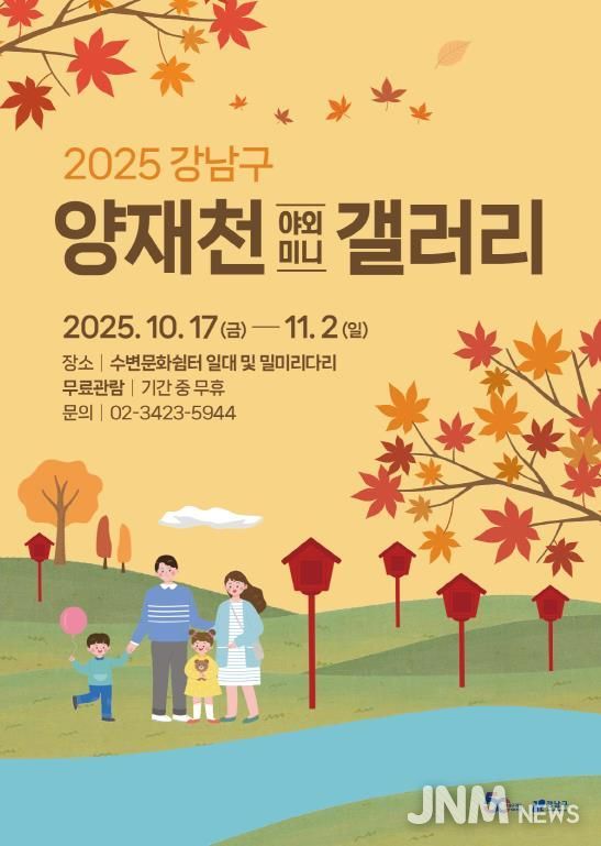 제이앤엠뉴스 | 꿈이 모이는 도시, 미래를 그리는 강남구가 오는 10월 17일부터 11월 2일까지, 양재천 수변문화쉼터~밀미리교 구간 산책로에서 ‘양재천 미니 아트 갤러리’를 운영한다.