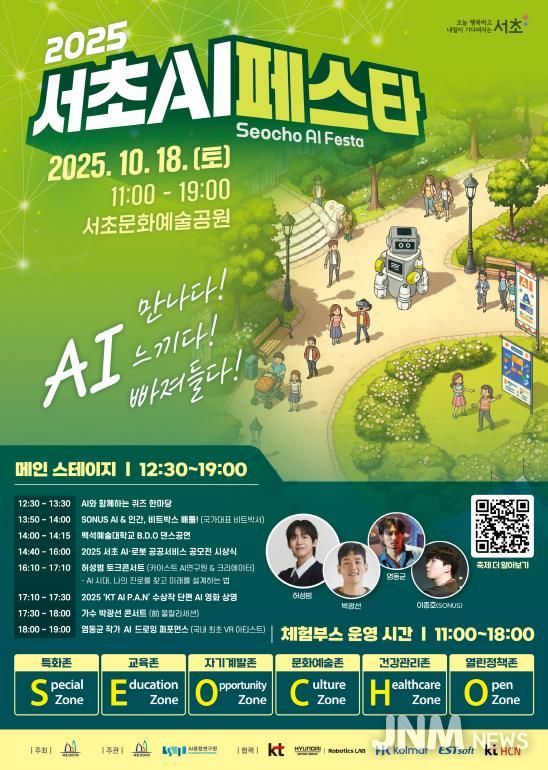 제이앤엠뉴스 | 서울 서초구는 ‘양재 AI 특구’ 지정 1주년을 기념해 오는 18일 서초문화예술공원에서 누구나 인공지능(AI)을 만나고, 느끼고, 빠져들 수 있는 ‘2025 서초 AI 페스타’를 개최한다고 밝혔다.