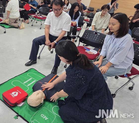 제이앤엠뉴스 | 김해시서부보건소는 지난 9월 24일 장유출장소 직원을 대상으로 응급상황 발생 시 신속한 대응 능력 강화를 위해 이론과 실습을 병행한 심폐소생술(CPR) 교육을 실시했으며, 점차 교육 대상을 공공기관 직원으로 확대해 나갈 계획이라고 밝혔다.