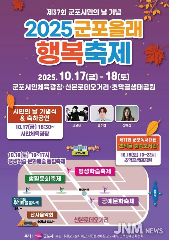 제이앤엠뉴스 | 군포문화재단 군포시평생학습마을은 오는 10월 18일, 산본로데오거리 일대에서 '제12회 군포시 평생학습축제'를 개최한다고 밝혔다. 이번 축제는 관내 평생학습 기관 및 단체·동아리 등이 직접 참여해 시민들과 함께 배우고 즐기는 축제의 장으로 꾸며진다.