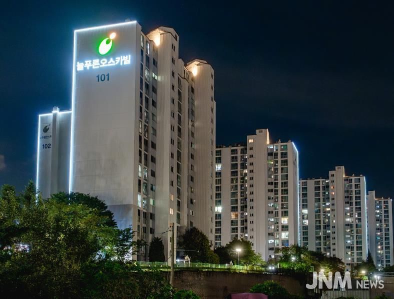 제이앤엠뉴스 | 오산시 관내 아파트(공동주택) 단지들이 오색찬란한 빛으로 물들고 있다.
