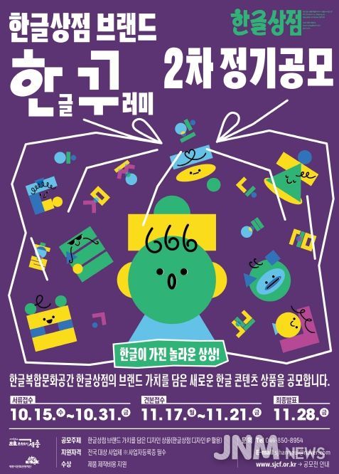 제이앤엠뉴스 | 세종시문화관광재단은 한글복합문화공간 한글상점의 글자, 캐릭터를 활용해 한글의 조형적 아름다움을 새롭게 해석하고, 이를 디자인 상품으로 개발하기 위한 ‘한꾸(한글꾸러미)’ 2차 디자인 공모전을 개최한다.