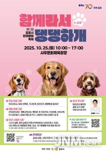 제이앤엠뉴스 | 김포시는 반려동물과 시민이 함께하는 문화의 장인 제1회 김포시 반려문화축제 '함께라서 댕댕하개 in 김포'가 오는 10월 25일 사우문화체육광장(사우동)에서 개최된다고 밝혔다.