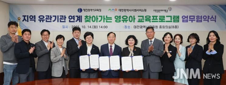 제이앤엠뉴스 | 대전시교육청은 10월 14일 대전광역시사회서비스원 및 대전문화재단과'지역 유관기관 연계 찾아가는 영유아 교육프로그램'운영 업무협약을 체결했다고 밝혔다.