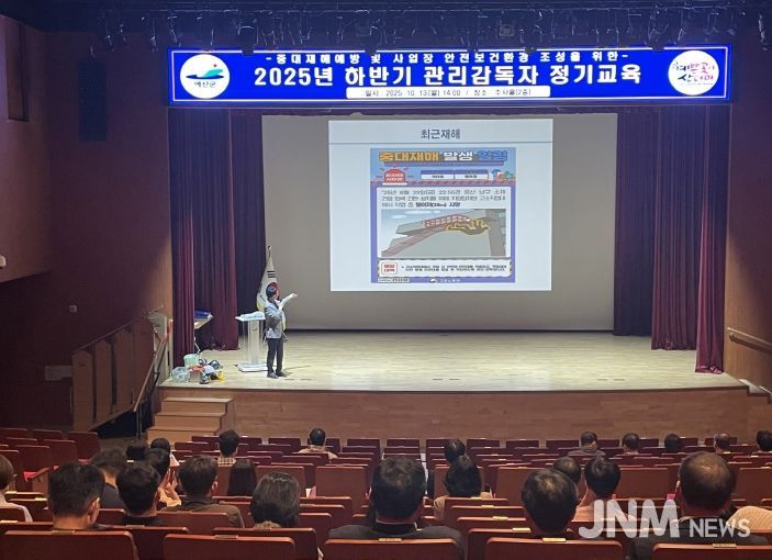 제이앤엠뉴스 | 예산군은 지난 13일 군청 추사홀에서 중대재해 예방과 안전한 근로환경 조성을 위해 ‘2025년 하반기 관리감독자 집체교육’을 실시했다고 밝혔다.