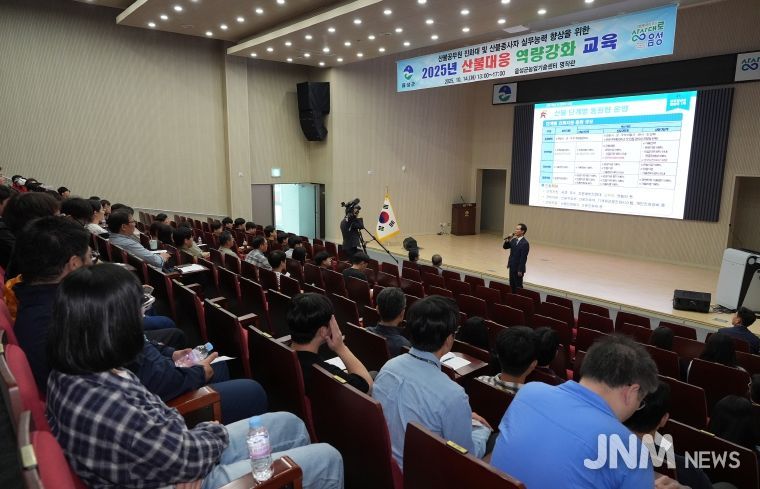 제이앤엠뉴스 | 음성군은 14일 음성명작관에서 군청 소속 직원 150여 명으로 구성된 공무원 진화대를 대상으로 산불 진화 이론교육 및 현장 실습 교육을 실시했다.