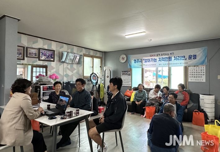 제이앤엠뉴스 | 영주시는 지난 14일 문정동 경로당에서 시민들이 보다 편리하게 지적민원을 해결할 수 있도록 ‘찾아가는 지적민원현장방문처리반’을 운영해 현장에서 민원 상담과 처리를 진행했다.