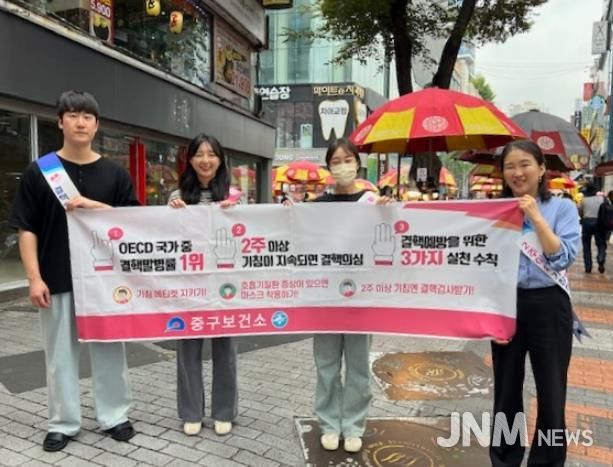 중구는 노점상이 집중된 지역으로 다수의 시민과 방문객이 밀접하게 모이는 공간 특성상 결핵 등 전염성 질환의 감염 위험이 상대적으로 높아, 보건소에서는 결핵 및 잠복결핵감염에 대한 기본 정보와 예방법을 담은 자료를 배포하고, 보건소에서 운영 중인 결핵 검진 및 결핵 관리 사업을 안내하는 현장 중심의 캠페인을 계획하고 실시했다.