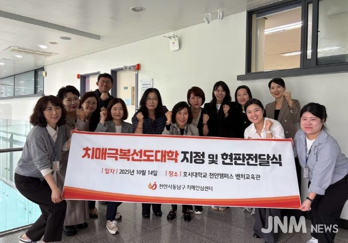 제이앤엠뉴스 | 천안시는 14일 치매극복선도대학으로 신규 지정된 호서대학교 글로벌융합대학에 현판을 전달했다고 밝혔다.