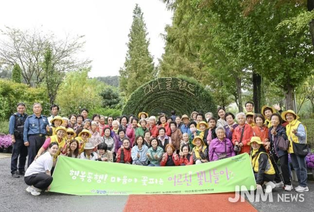 제이앤엠뉴스 | 아산시 영인면 행복키움추진단은 지난 14일 피나클랜드(대표 류일우)의 후원으로 관내 어르신 45명을 모시고 ‘오천만송이 국화 꽃나들이’ 행사를 실시했다.