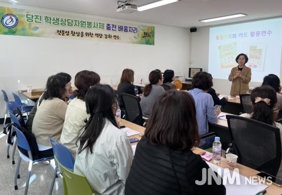 제이앤엠뉴스 | 충청남도당진교육지원청 Wee센터는 15일 당진 학생상담자원봉사자 20명을 대상으로 ‘2025년 학생상담자원봉사제 충전 배움자리(동물가족화카드 활용 연수)’를 운영했다.