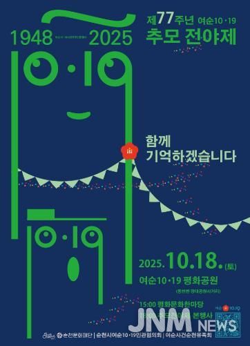 제이앤엠뉴스 | 순천시와 (재)순천문화재단은 오는 18일 순천 여순10·19평화공원(순천시 역전길 127) 일대에서 ‘제77주년 여순10·19사건 추모전야제’를 개최한다.