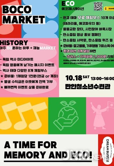 제이앤엠뉴스 | 안양시청소년재단 소속 만안청소년수련관은 오는 10월 18일 청소년과 시민이 함께하는 ‘환경과 역사를 잇다 - BOCO MARKET & E-G 페스티벌’을 개최한다고 15일 밝혔다.