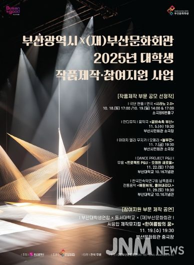 제이앤엠뉴스 | (재)부산문화회관(대표이사 차재근)이 부산광역시와 함께 지역대학생들과 청년예술인들을 위한 무대를 마련한다. 부산광역시 주최, (재)부산문화회관 주관으로 추진되는 '2025년 대학생 작품제작·참여지원 사업'은 2022년부터 시작되어, 대학 및 지역 내 다양한 재능을 가진 예비창작자들을 발굴 및 지원해오고 있다.