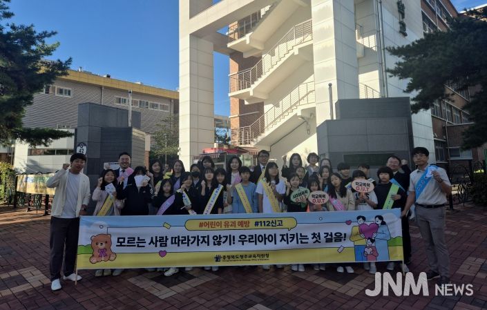 제이앤엠뉴스 | 청주교육지원청은 2025년 10월 15일 솔밭초등학교에서 학생들의 안전한 학교생활을 위해 학교폭력 및 유괴·실종 예방 등교맞이 캠페인을 실시했다.
