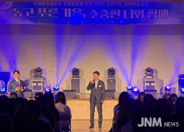 제이앤엠뉴스 | 영덕교육지원청은 10월 14일부터 16일까지 관내 초, 중, 고등학교 5교에서 학생들과 교직원을 대상으로 2025 찾아가는 문화예술공연 ‘높고 푸른 가을, 소중한 너와 함께’를 성황리에 운영했다.