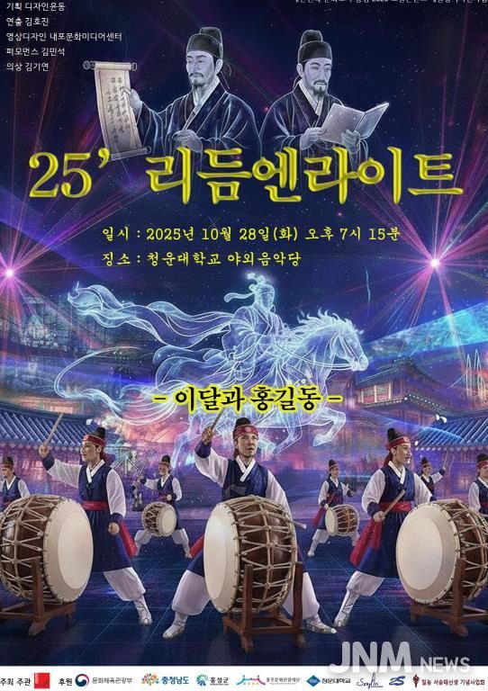 제이앤엠뉴스 | 홍주문화관광재단은 오는 28일 오후 7시, 청운대학교 야외음악당에서 ‘25’ 리듬엔라이트(부제: 이달과 홍길동)’ 공연을 통해 홍성의 역사적 인물들과 문화유산을 새로운 시각으로 재조명하며, 지역 기반 예술 콘텐츠의 발전을 도모한다.