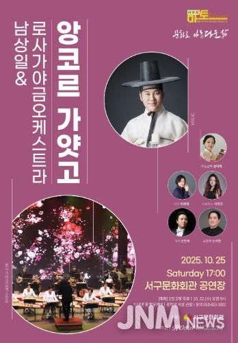 제이앤엠뉴스 | 서구문화회관은 10월 25일 오후 5시 서구문화회관 공연장에서 소리꾼 남상일과 로사가야금오케스트라를 초청하여 서구愛 마토콘서트‘앙코르 가얏고’ 공연을 개최한다.