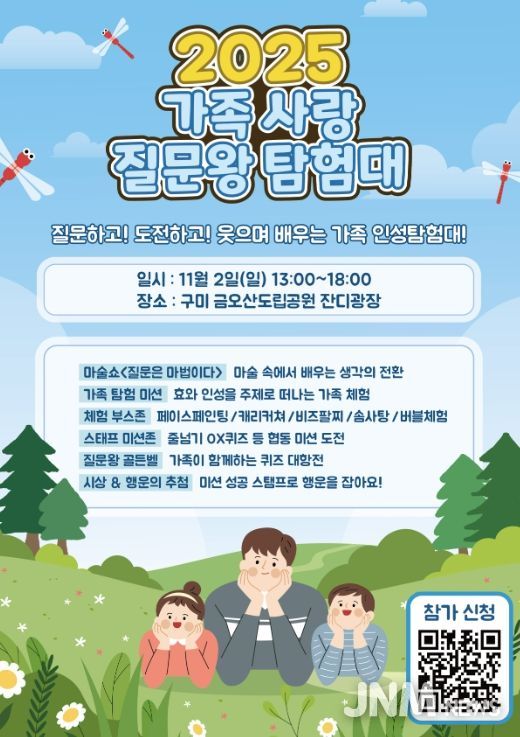 제이앤엠뉴스 | 경북교육청은 11월 2일 구미시에 있는 금오산도립공원 잔디광장 일원에서 ‘가족 사랑 질문왕 탐험대’를 개최한다고 16일 밝혔다.