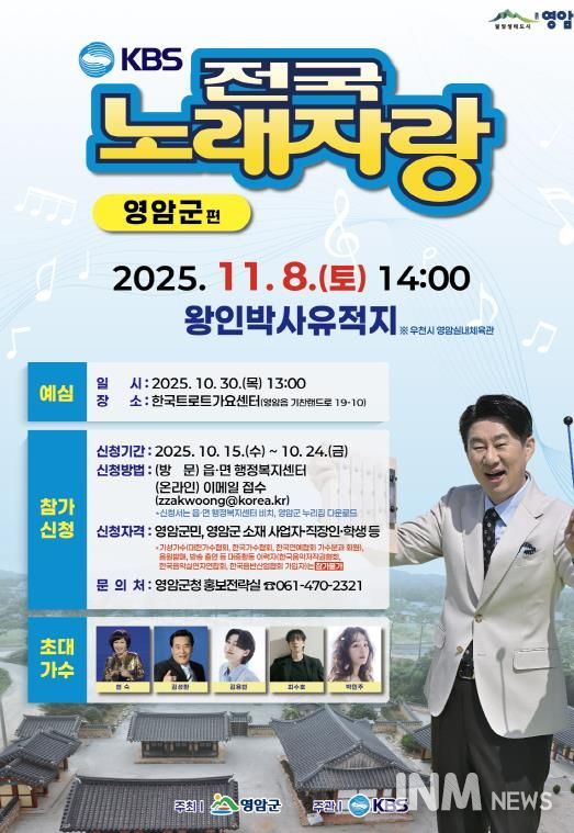 제이앤엠뉴스 | 영암군이 KBS전국노래자랑 예심 참가자를 15~24일 선착순 300명 모집한다.