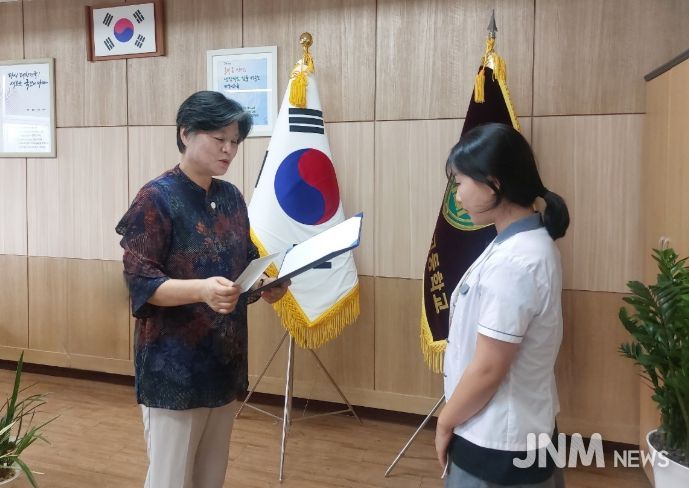 제이앤엠뉴스 | 제주도교육청 서귀포여자고등학교는 14일 제주은행 봉사단으로부터 장학금 60만원을 전달받았다.