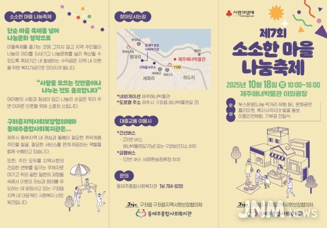 제이앤엠뉴스 | ‘제7회 소소한 마을 나눔 축제’가 오는 10월 18일 제주해녀박물관 야외광장에서 열린다.