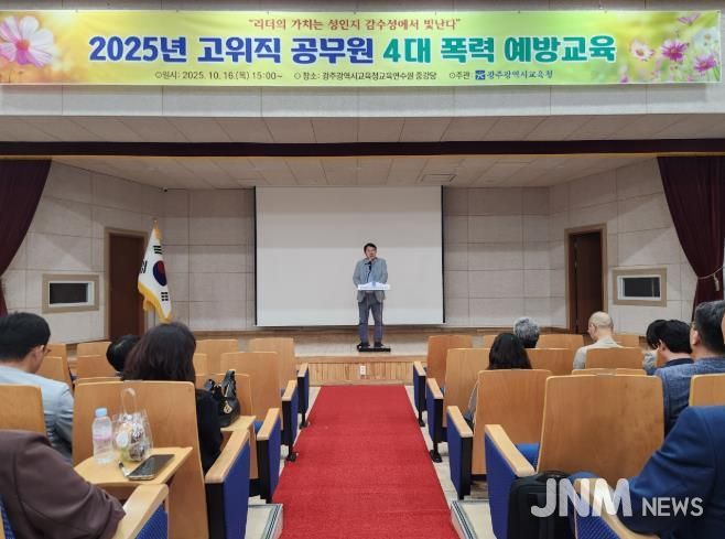 제이앤엠뉴스 | 광주시교육청은 16일 교육연수원 중강당에서 5급 이상 공무원을 대상으로 ‘4대 폭력(성희롱·성매매·성폭력·가정폭력) 예방교육’을 실시했다.