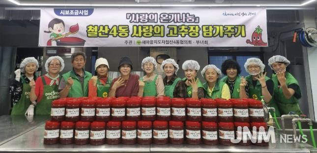 한편, 새마을지도자 철산4동협의회와 부녀회는 매년 ▲밑반찬 나눔 ▲해충방역 소독 ▲고추장 나눔 ▲김장 나눔 등 다양한 봉사활동으로 이웃사랑을 실천하고 있다.