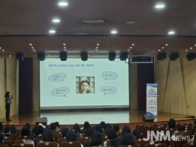 연수 강사로는 경복대학교 작업치료학과 금효진 교수가 나서 ‘우리 반 아이들의 산만함과 충동성, 현명하게 대처하기’를 주제로 강연을 진행했다. 금 교수는 특별한 요구를 가진 유아의 정서·행동 지원 전략을 실제 사례 중심으로 제시하며, 교실 내 긍정적 행동지원(PBS)과 감각 조절 접근법을 활용한 실천적 지원 방안을 소개했다.