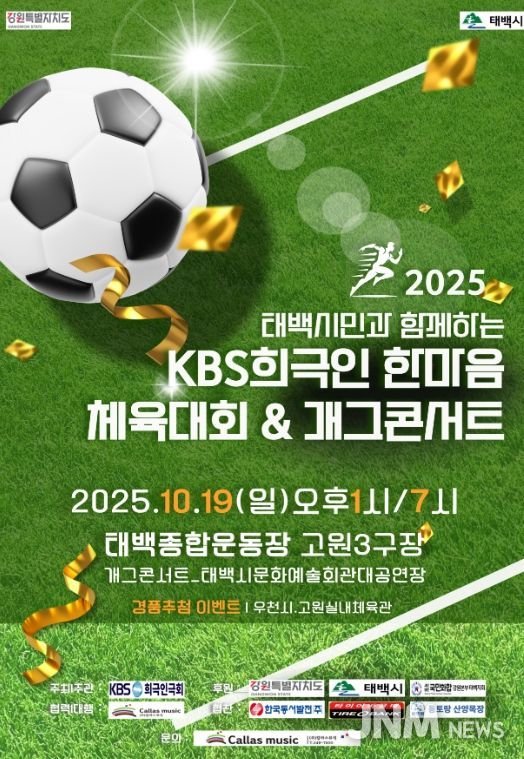 제이앤엠뉴스 | 태백시는 오는 19일 오후 1시 태백종합운동장 고원3구장에서 ‘2025 태백시민과 함께하는 한마음체육대회 및 개그콘서트’를 개최한다고 밝혔다.