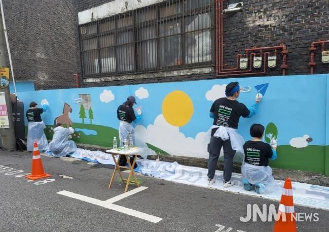 제이앤엠뉴스 | 서울 성동구 마장동 자원봉사캠프는 지난 9월 (사)함께하는 한숲, HPE기업과 함께 민관협력으로 ‘주택담장 벽화그리기 행사를 진행했다.
