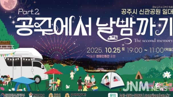 제이앤엠뉴스 | 충청권에서 유일하게 문화체육관광부 ‘야간관광 특화도시’로 선정된 공주시가 오는 10월 25일부터 26일까지 금강신관공원 일원에서 ‘공주에서 날밤까기’ 행사를 개최한다.