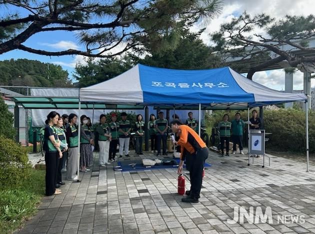 이날 훈련엔 포곡읍, 주민자치센터, 행복마을관리소 전 직원과 포곡119 안전센터, 지원민방위대, 행정복지센터를 방문한 민원인 등이 참여했다.