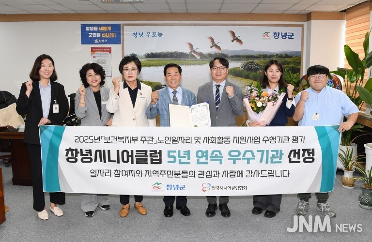 제이앤엠뉴스 | 창녕군은 보건복지부가 주관한 2025년 노인일자리 및 사회활동 지원사업 수행기관 평가에서 창녕시니어클럽(관장 김종권)이 5년 연속 우수기관으로 선정되는 영예를 안았다고 17일 밝혔다.