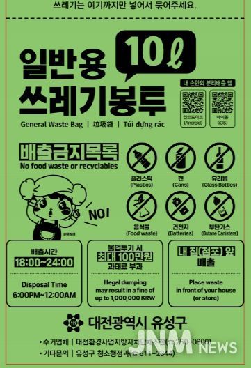제이앤엠뉴스 | 대전 유성구는 주민의 분리배출 참여를 높이고 깨끗한 도시 이미지 조성을 위해 새롭게 디자인한 종량제봉투를 공급한다고 17일 밝혔다.