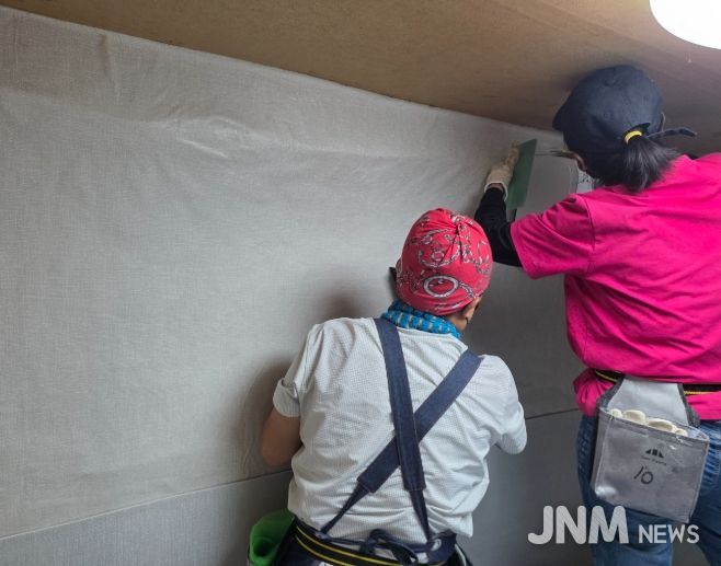 참여자들은 실습을 통해 익힌 도배 기술을 활용해 노후된 벽지를 새로 교체하며 이웃에게 쾌적하고 따뜻한 생활공간을 선물했다.