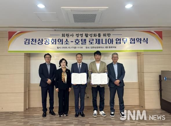 제이앤엠뉴스 | 김천상공회의소는 지난 10월 17일 로제니아 호텔과 업무협약을 체결했다.