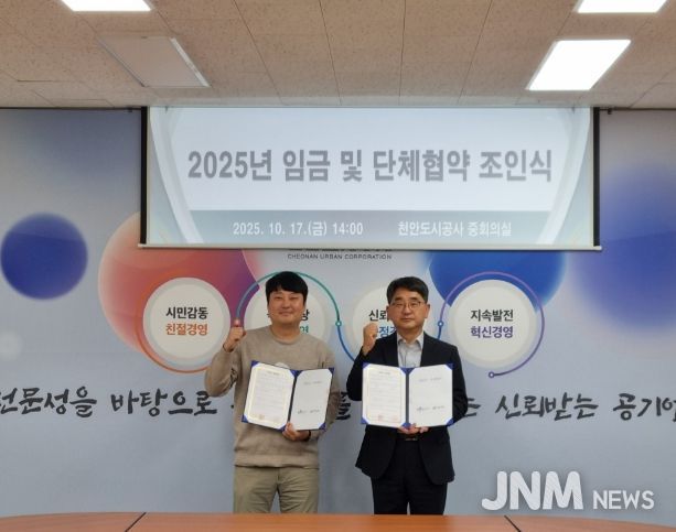제이앤엠뉴스 | 천안도시공사는 17일 공사 노동조합과 ‘2025년 단체협약 및 임금협약’을 체결했다.