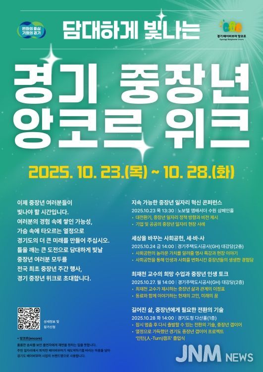 제이앤엠뉴스 | 경기도가 중장년 세대의 도약과 성장을 지원하기 위해 23일부터 28일까지 6일간 ‘경기 중장년 앙코르 위크(week)’을 개최한다.