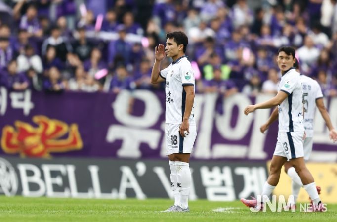 김천상무프로축구단(대표이사 이재하)이 10월 18일 토요일 14시, 안양종합운동장에서 열린 ‘하나은행 K리그1 2025’ 33R 원정경기에서 FC안양(이하 안양)에 1대 4로 경기를 마무리하며, 정규 라운드 일정을 마쳤다. 승점 55점을 기록 중인 김천상무는 대전하나시티즌을 다득점으로 따돌리며 2위로 파이널 A그룹 일정에 돌입한다.