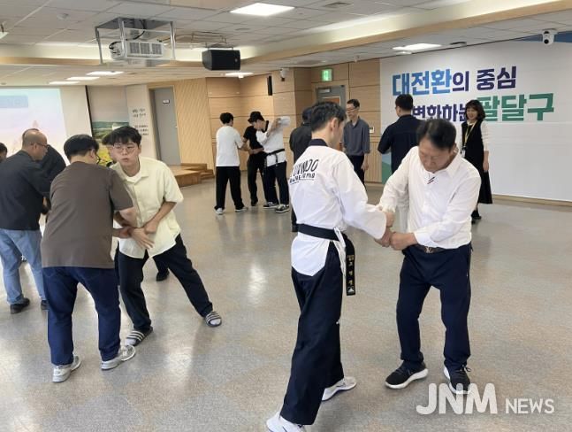 제이앤엠뉴스 | 수원시 팔달구는 공공청사 내 각종 폭력 및 테러에 대응하기 위해 지난 17일 SOS팔달안전봉사단과 구·동 공직자를 대상으로 구청 대회의실에서 호신술 실습 등 범죄예방 교육을 실시했다.